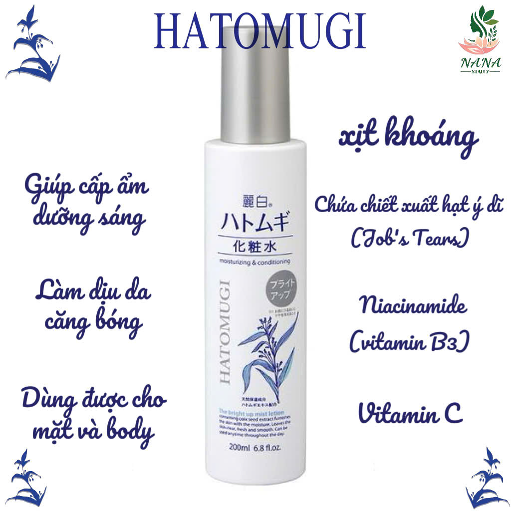 -Chứa chiết xuất hạt ý dĩ (Job's Tears), niacinamide (vitamin B3) và vitamin C giúp cấp ẩm và làm sáng da. -Dạng xịt sương mịn, dễ dàng sử dụng bất cứ lúc nào trong ngày. -Giúp duy trì độ ẩm, làm dịu da và mang lại làn da mềm mại, tươi tắn. -Dung tích lớn (200ml), có thể dùng cho cả mặt và cơ thể