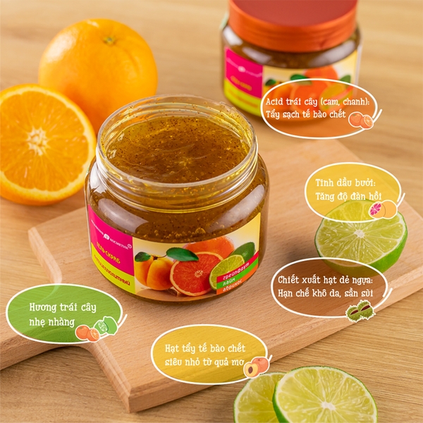 ✔️ Chứa axit từ hoa quả giúp tẩy sạch các lớp da chết sần sùi và cân bằng độ ẩm.