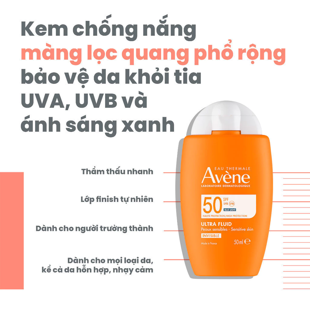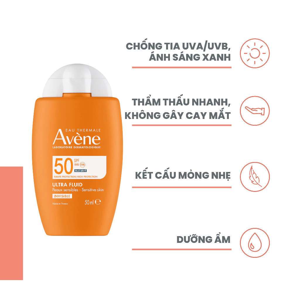 Kem chống nắng cho da nhạy cảm, da thường Avene Ultra Fluid Invisible SPF50 50ml