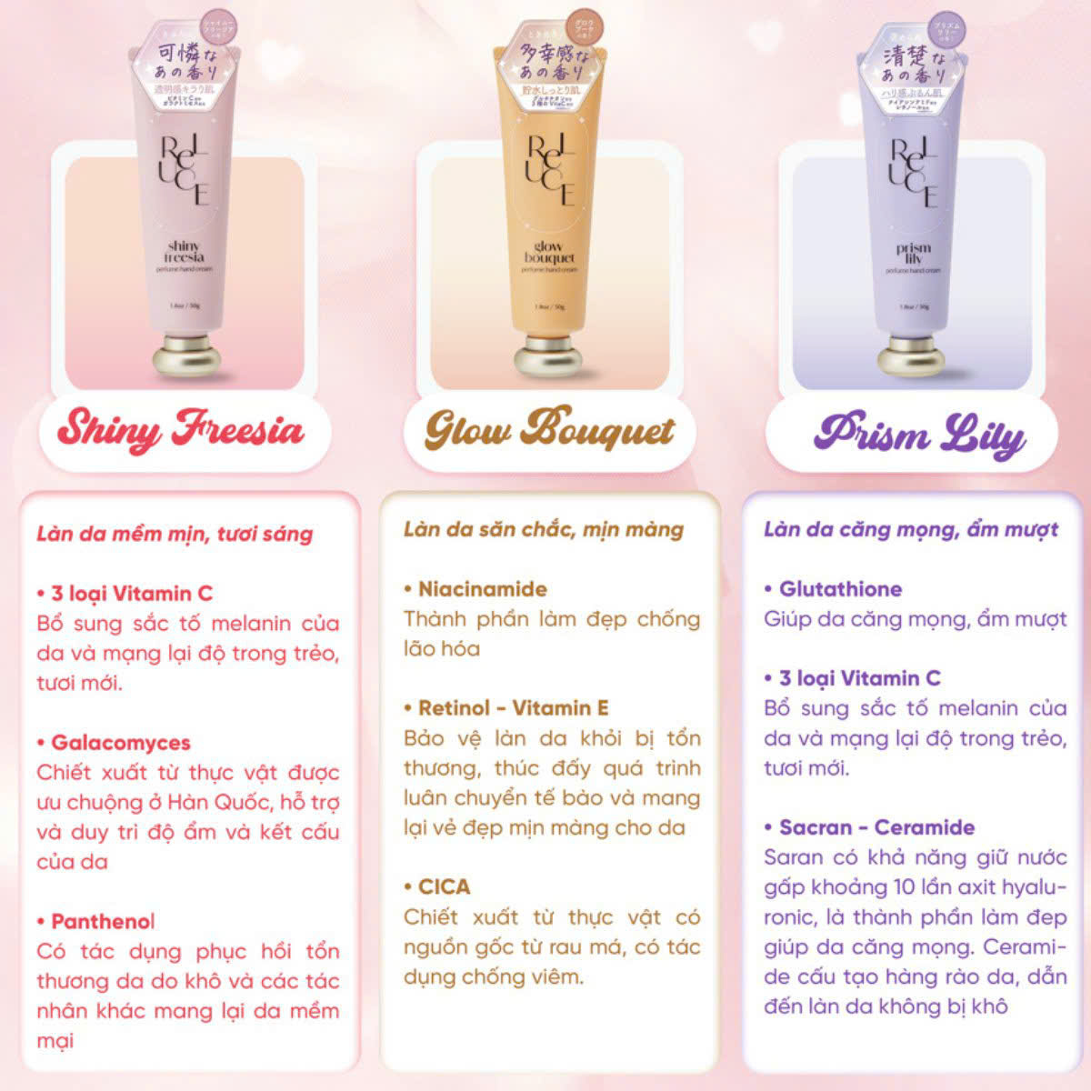 Công dụng nổi bật: – Dưỡng ẩm sâu cho da tay mềm mượt suốt nhiều giờ – Bổ sung collagen, giúp da tay săn chắc, hạn chế nhăn nheo – Làm sáng & mịn da chỉ sau vài lần sử dụng – Hấp thụ nhanh, không nhờn rít, phù hợp mọi loại da