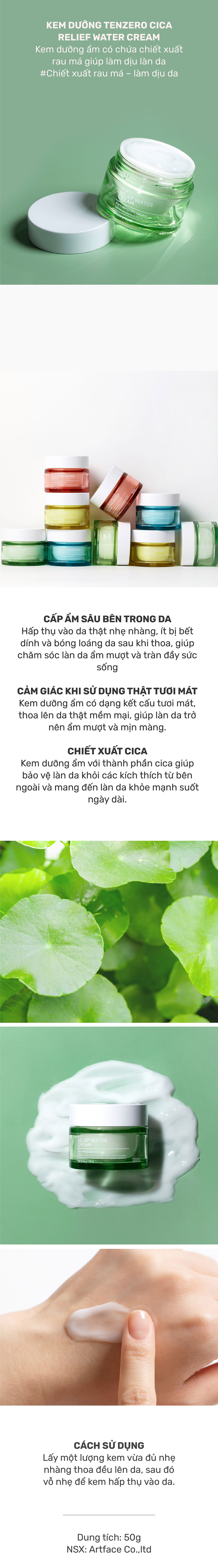 Kem Dưỡng Làm Dịu Da, Mờ Thâm TENZERO CICA RELIEF WATER CREAM 50G
