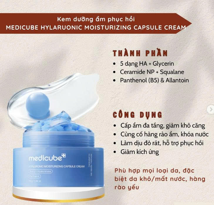 Kem dưỡng viên nang cấp ẩm và dịu da Medicube Hyaluronic Moisturizing Capsule Cream 50gr