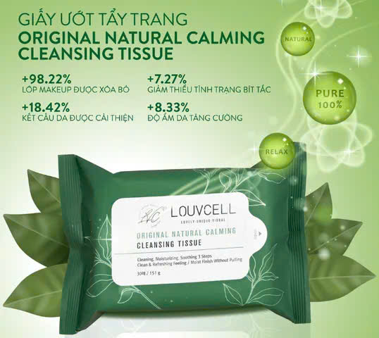 Khăn giấy ướt tẩy trang Louv Cell Original Natural Calming Cleansing Tissue 10 tờ