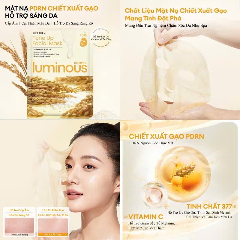 MẶT NẠ COLORKEY LUMINOUS PDRN – BÍ KÍP CHĂM DA CĂNG MƯỚT