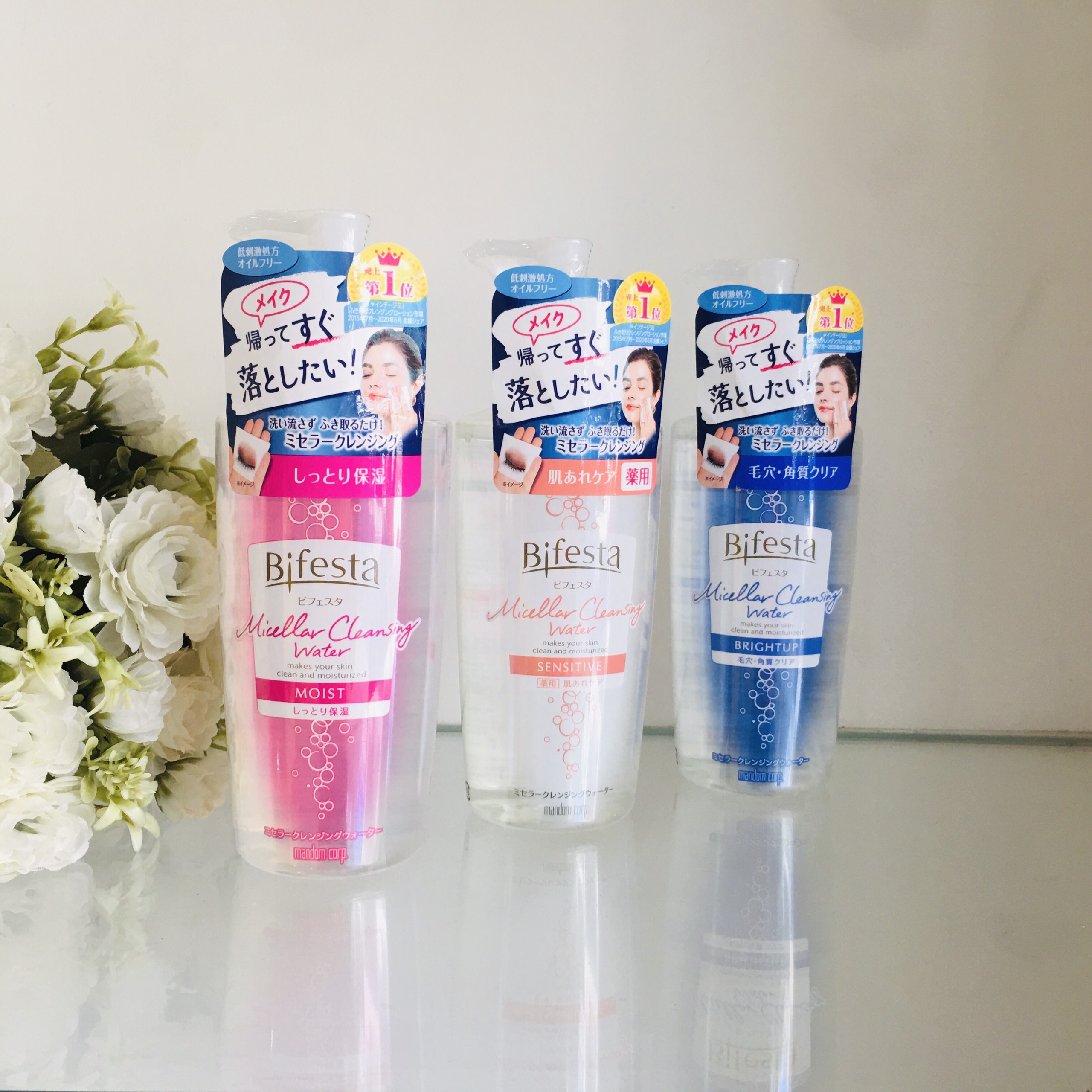 - Nước tẩy trang Bifesta 300ml – sản phẩm tẩy trang dạng nước dành cho mọi loại da đặc biệt là da nhạy cảm, da mụn, những bạn dị ứng với dầu tẩy trang hay không thường xuyên make up thì có thể chọn em tẩy trang dạng nước này