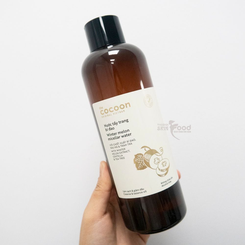 - Nước Tẩy Trang Làm Sạch Dịu Nhẹ Chiết Xuất Bí Đao Cocoon Winter Melon Micellar Water hiện nay đã có mặt tại Thế Giới Skinfood với thành phần chính là chiết xuất Bí Đao có đặc tính làm mát và giảm nhiệt cho làn da hiệu quả, chứa giàu vitamin E giúp cải thiện tình trạng da khô và giúp da mềm mịn hơn. Đặc biệt có khả năng kháng viêm, diệt khuẩn mạnh mẽ giúp cải thiện và ngăn ngừa tình trạng mụn như mụn trứng cá, mụn sưng viêm, mụn đậu đen,...