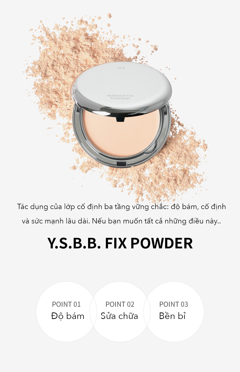 Phấn Phủ 3CE Makeup Fix Powder có 3 tông màu: