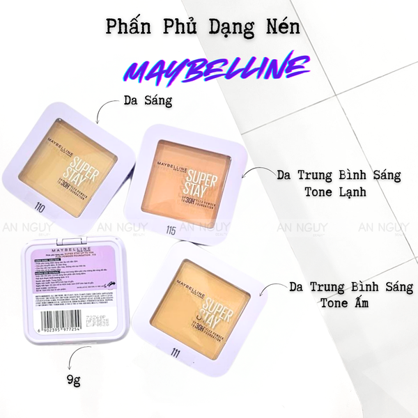 - Phấn Phủ Dạng Nén Maybelline Super Stay Up To 30H Flex Powder Foundation là phấn phủ trang điểm dạng nén, lâu trôi, che phủ khuyết điểm và lỗ chân lông cho lớp nền mịn mượt, đều màu, không vón cục trên da. Đồng thời giúp bảo vệ da chống nắng.