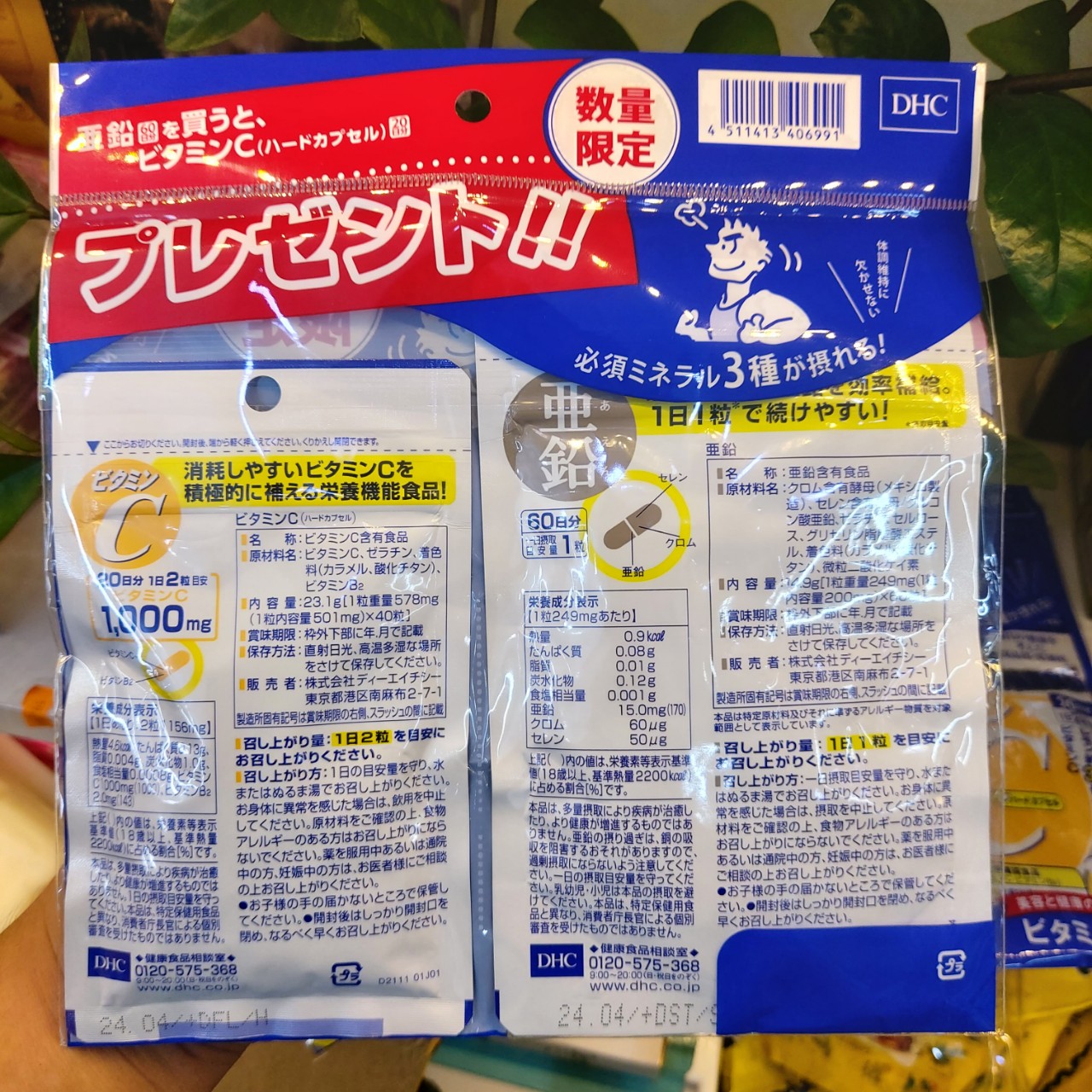 VIÊN UỐNG BỔ SUNG KẼM VÀ VITAMIN C CỦA DHC bổ sung vitamin B2 rất tốt cho sức khỏe, giúp tăng sức đề kháng, làm giảm cholesterol, phòng chống các bệnh mãn tính do thiếu Vitamin C.