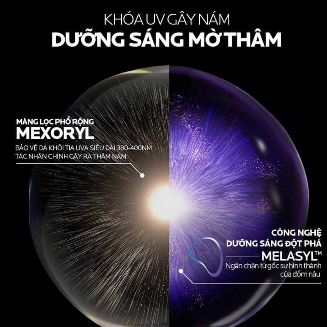 ✨Màng lọc phổ rộng Mexoryl 400 bảo vệ da vượt trội tránh tia UVB, UVA và đặc biệt là tia UVA siêu dài là tác nhân gây ra gây thâm nám, lão hóa da
