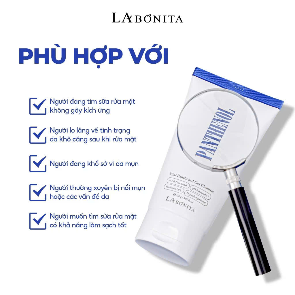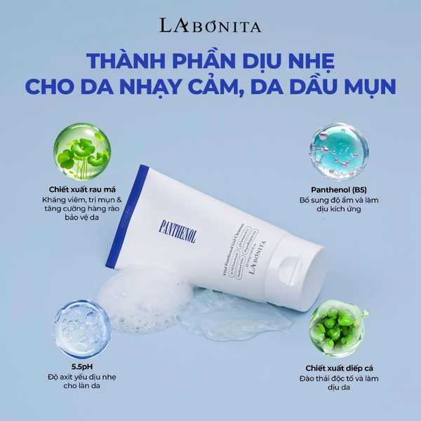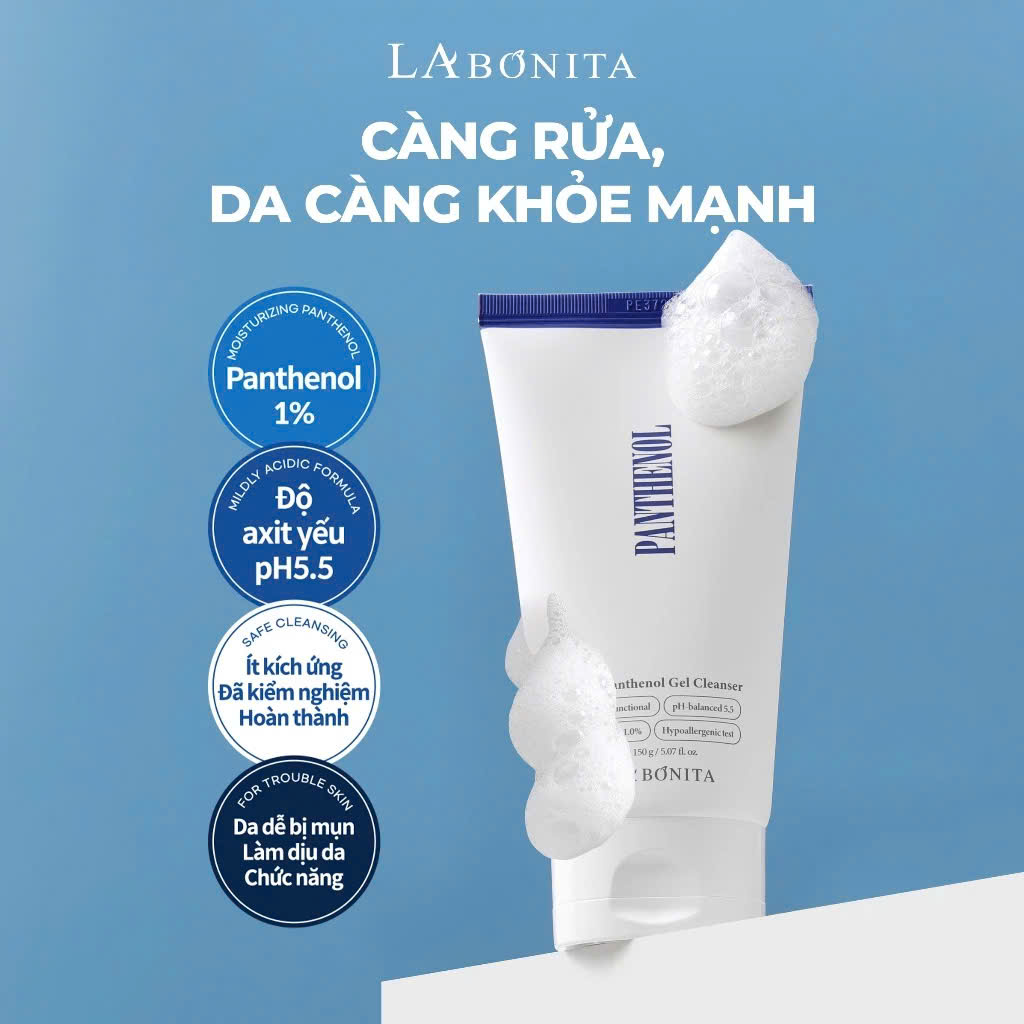 Sữa Rửa Mặt La Bonita Vital Panthenol Gel Cleanser Dành Cho Da Mụn, Nhảy Cảm - 50g