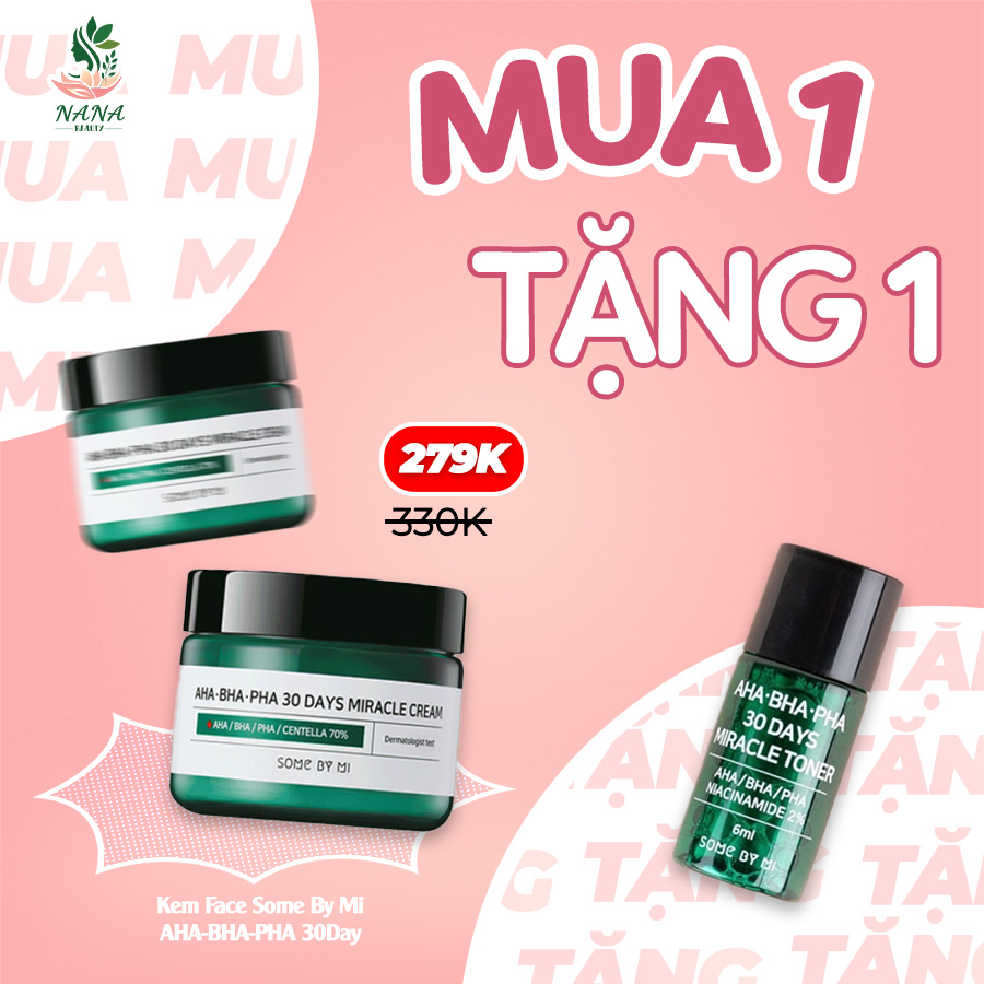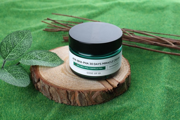 Some By Mi AHA-BHA-PHA 30 Days Miracle Cream kết hợp cả 3 thành phần AHA/BHA/PHA giúp loại bỏ tế bào chết, bổ dung độ ẩm và chứa chiết xuất rau má, tràm trà...giúp làm dịu và chăm sóc da mụn