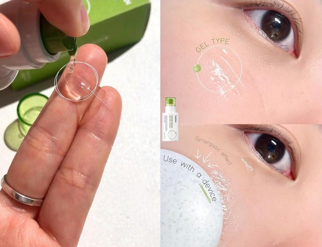 Dạng gel trong suốt, lỏng mềm dễ tán và thấm nhanh vào da. Cảm giác ẩm mềm không bị nặng bí