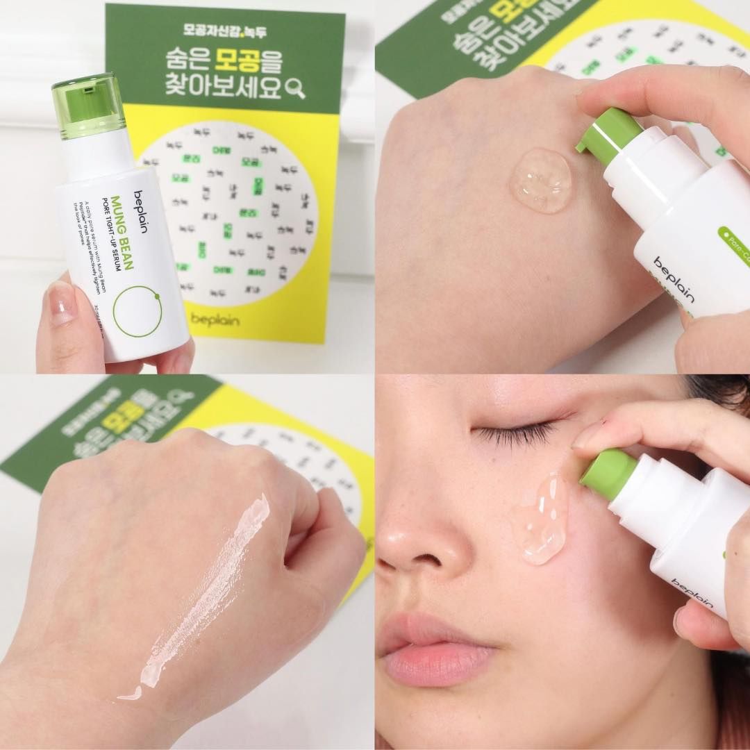- Beplain Mung Bean Pore Tight Up Serum là tinh chất cải thiện mọi vấn đề về lỗ chân lông. Hãng đã cam kết hiệu quả chỉ sau 2 tuần mà không hề gây kích ứng da nhờ chiết xuất chính từ Đậu xanh - thành phần đặc trưng của Beplain