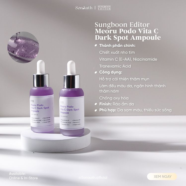 Trẻ hóa làn da từ Quả Nho tím với Sungboon Editor Meoru Podo Vita C Dark Spot Ampoule