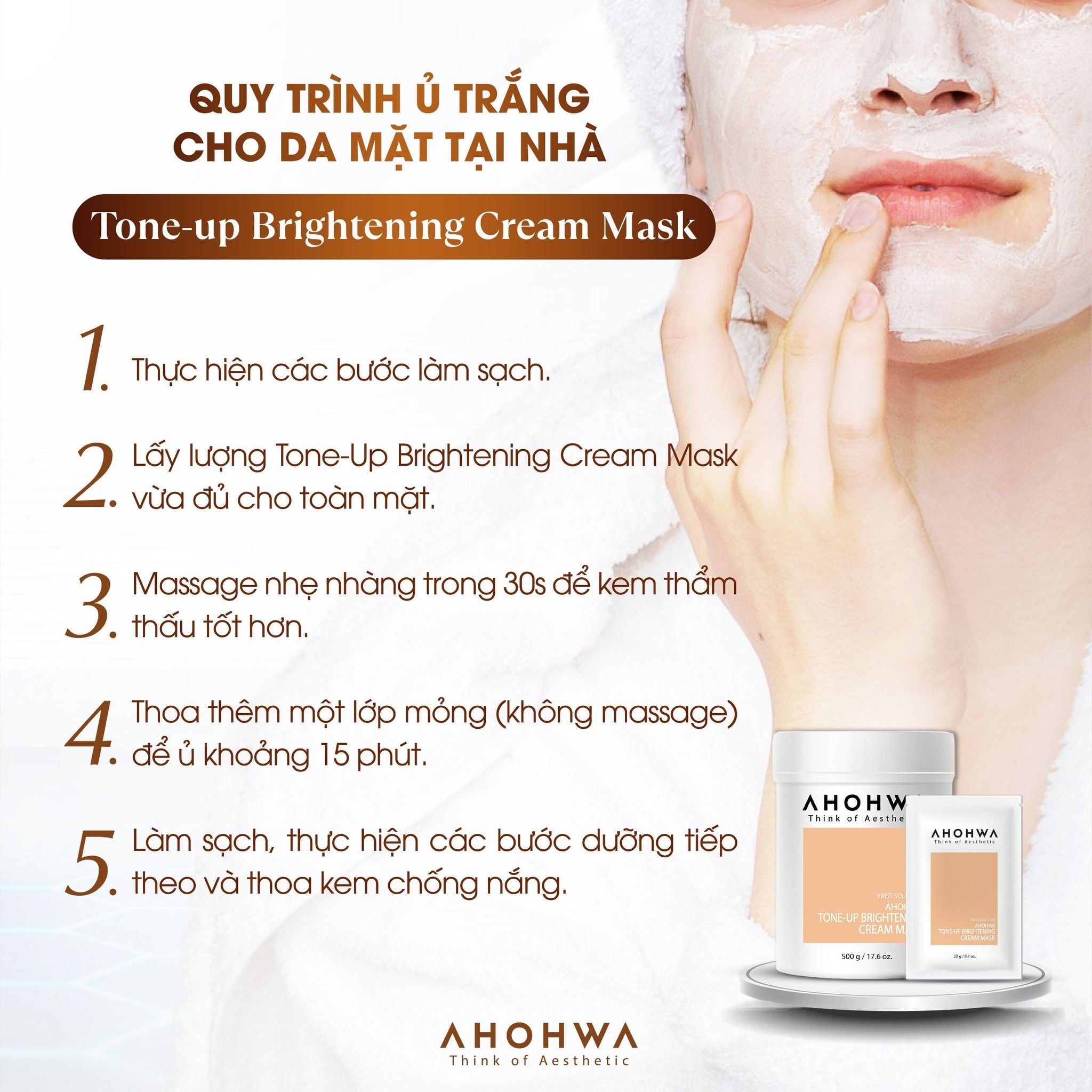 Bước 2: Thoa mặt nạ ủ trắng AHOHWA một lớp dày, ủ 15-20 phút.