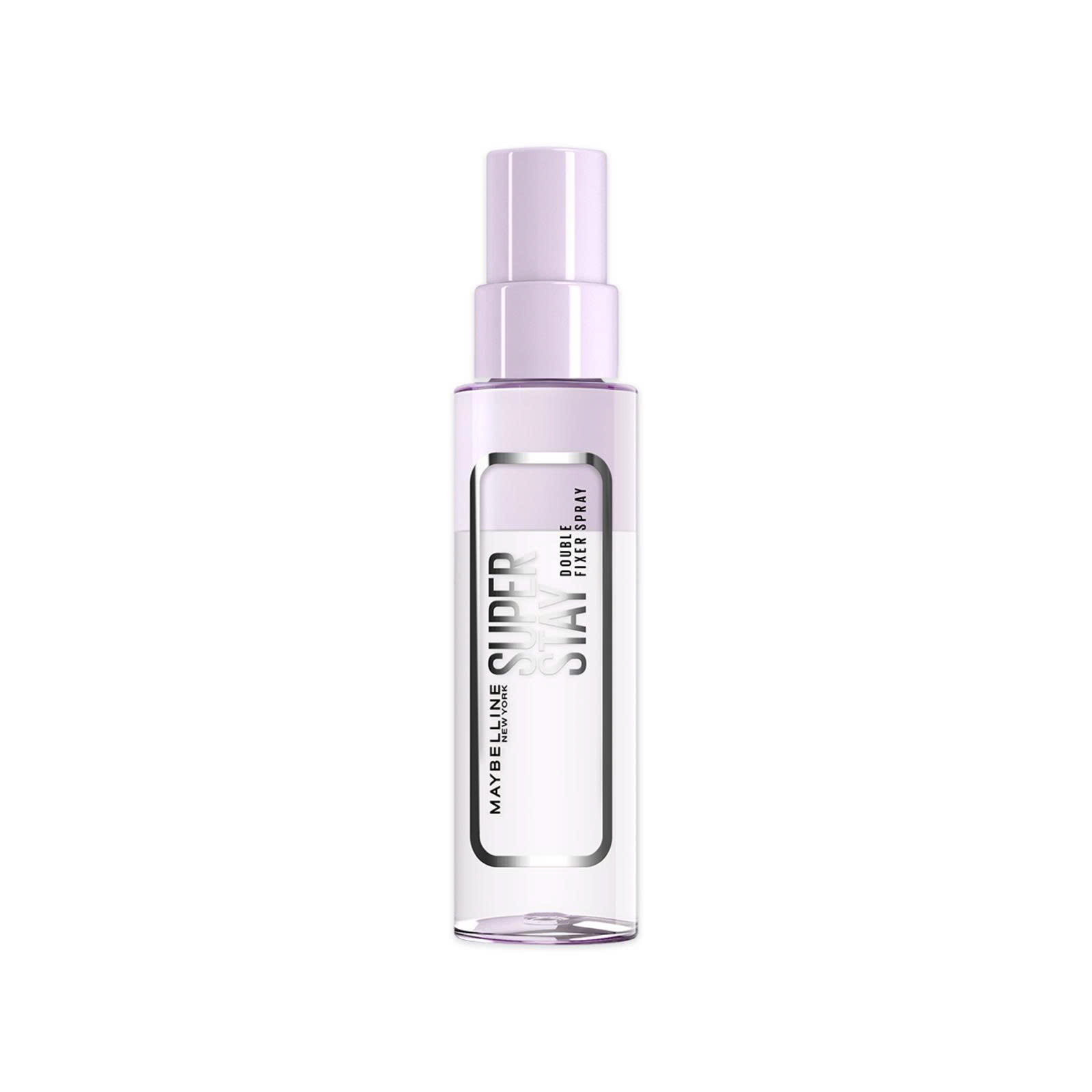 Maybelline New York Superstay Double Fixer là xịt khóa nền thế hệ mới với công nghệ "kép" độc đáo. Sản phẩm giúp giữ lớp trang điểm bền đẹp lên đến 24 giờ, đồng thời cấp ẩm sâu cho làn da. Với 3 lớp màng film mạnh mẽ, xịt khóa nền này cố định lớp trang điểm, chống xê dịch, lem trôi, xuống tone và kiểm soát hiệu quả dầu thừa, mồ hôi. Công thức còn được bổ sung dưỡng chất chuyên sâu như Squalane và Vitamin E, giúp lớp nền luôn ẩm mịn, không bị khô hay mốc. Vòi xịt phun sương siêu mịn ở cấp độ micro sẽ tạo ra những hạt sương nhẹ nhàng, phủ đều và tệp vào da một cách "vô hình", mang lại cảm giác thoải mái và nhẹ mặt suốt cả ngày.
