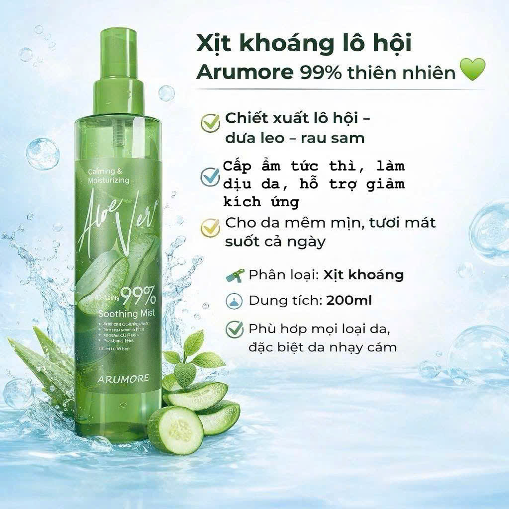 Xịt khoáng lô hội Arumore 99% 200ml